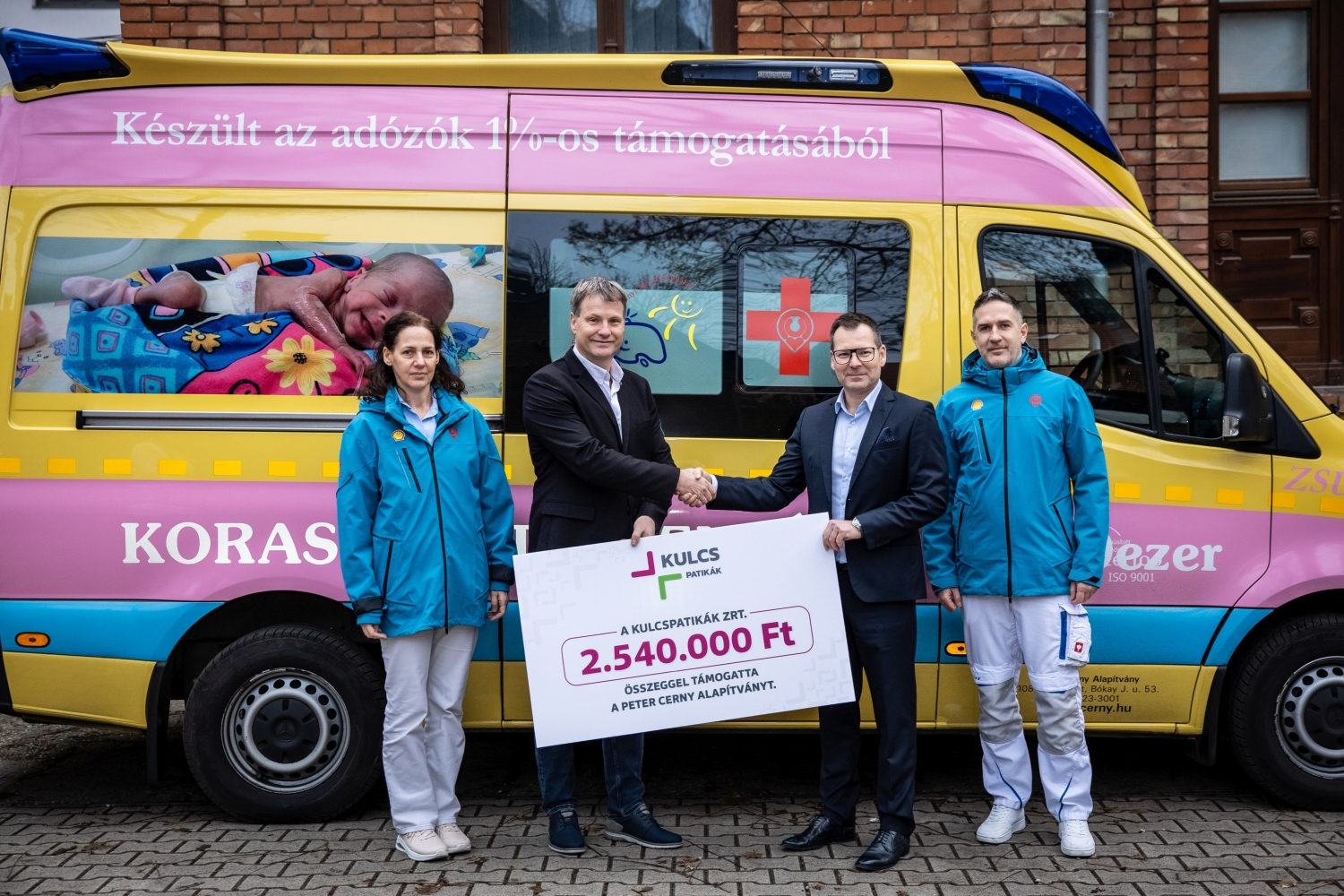 Az adomány hivatalos átadása 2025. december 15-én volt a Peter Cerny Alapítvány mentőállomásán. A támogatási összegről szóló jelképes csekket Kőhalmi Ákos, a Kulcs Patikák igazgatóságának elnöke nyújtotta át a Peter Cerny Alapítvány képviseletében Lendvai Barnabás, menedzser-igazgató részére.