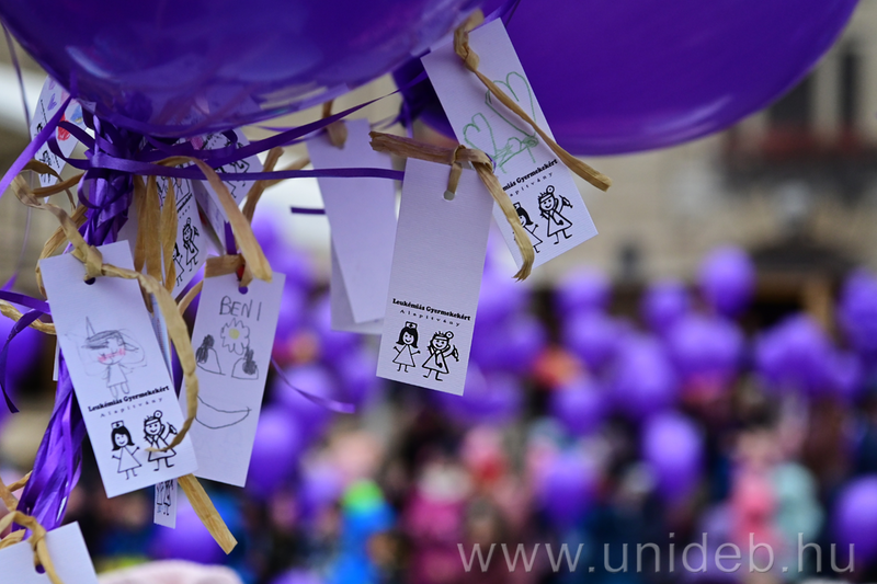 Több mint 500 lila lufi emelkedett a magasba szerdán a Debreceni Egyetemen. A bölcsődések és az óvodások, valamint a Gyermekhematológiai-onkológiai Osztályon kezelt gyerekek a környezetbarát léggömbökhöz erősített kedves üzenetekkel szeretnének reményt adni beteg társaiknak. A Hallják meg az égiek jókívánságainkat elnevezésű programot a Leukémiás Gyermekért Alapítvány szervezte a betegek világnapja alkalmából.
